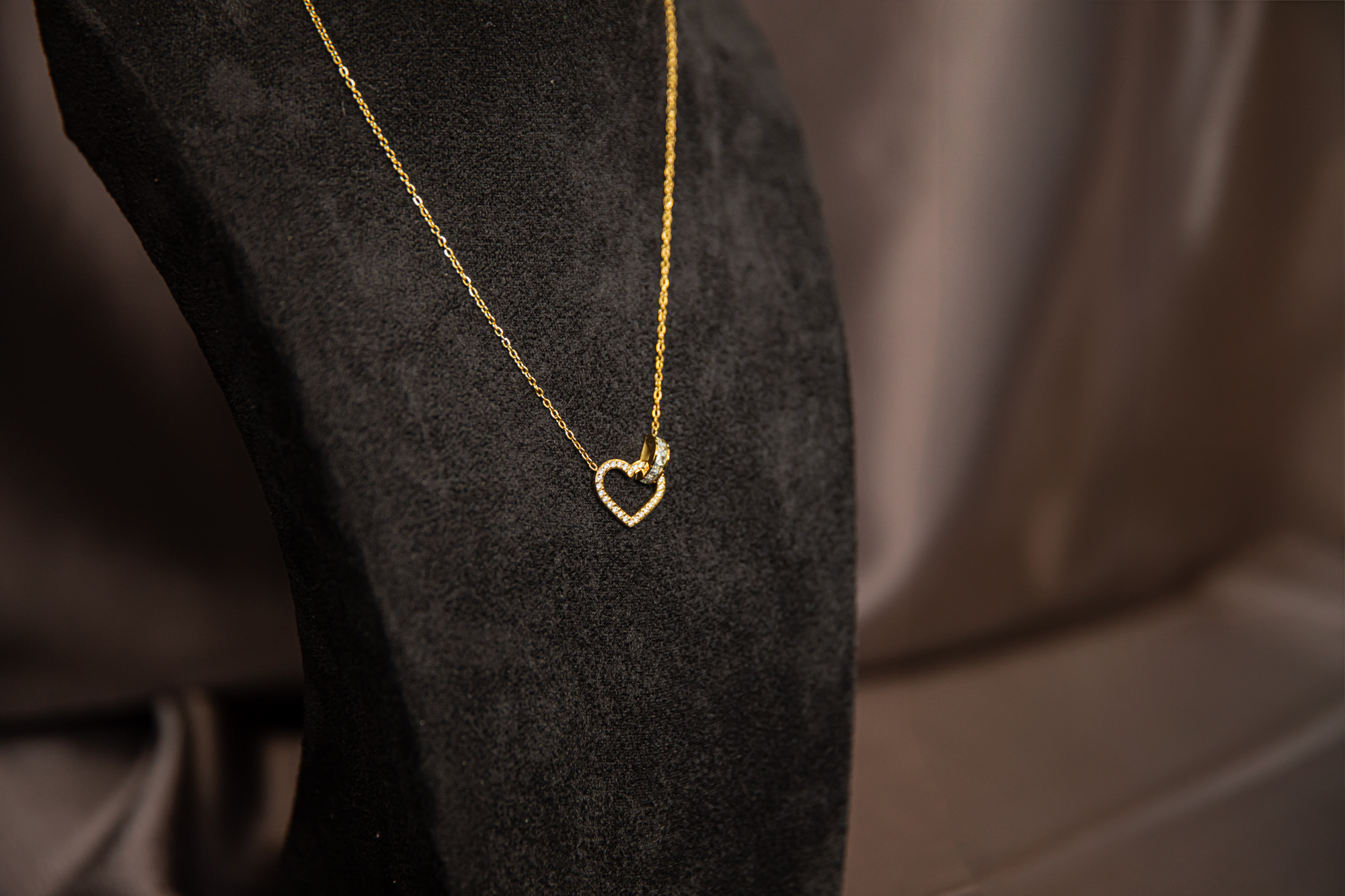 De Juna gouden ketting is een elegant sieraad met een gouden hartje versierd met subtiele diamantdetails. Perfect om een romantische en stijlvolle touch toe te voegen aan iedere outfit.