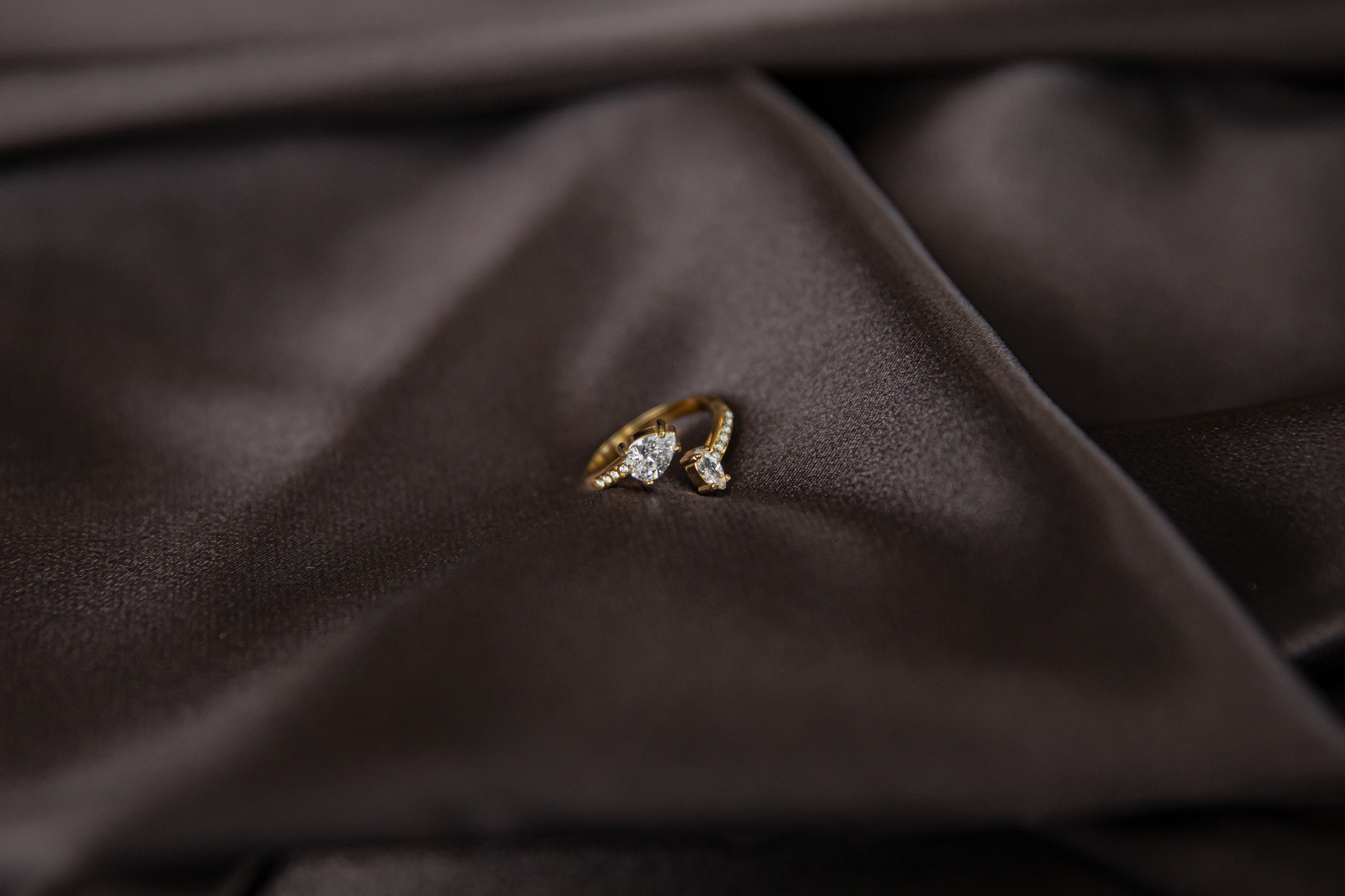 De Grace gouden ring heeft een modern open ontwerp, waarbij op beide uiteinden een subtiel gouden diamantje schittert aan de bovenkant van de vinger. Deze ring combineert tijdloze elegantie met een opvallende, eigentijdse look en is perfect voor dagelijks dragen of speciale gelegenheden.
